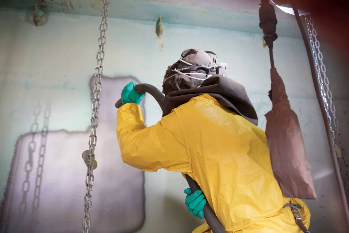 概要・施工状況を確認後、循環式エコクリーンブラスト装置の見学会も実施しました。