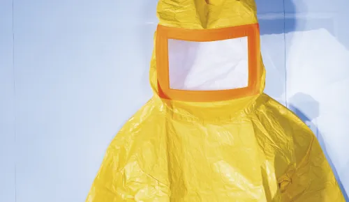 エアライン機能を有した上下分離タイプの全身防護服で、装着し送気することで全身を陽圧により有害粉じんから隔離防護します。
