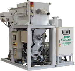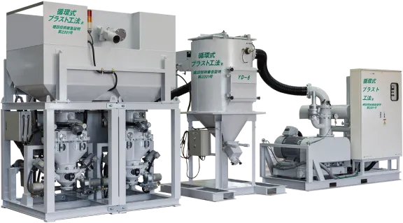 選別装置とブラストタンクの一体化が出来ていないと有害粉塵が施工現場の周囲に飛散してしまう恐れがあります。