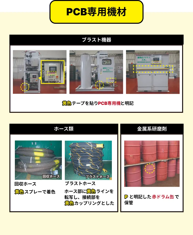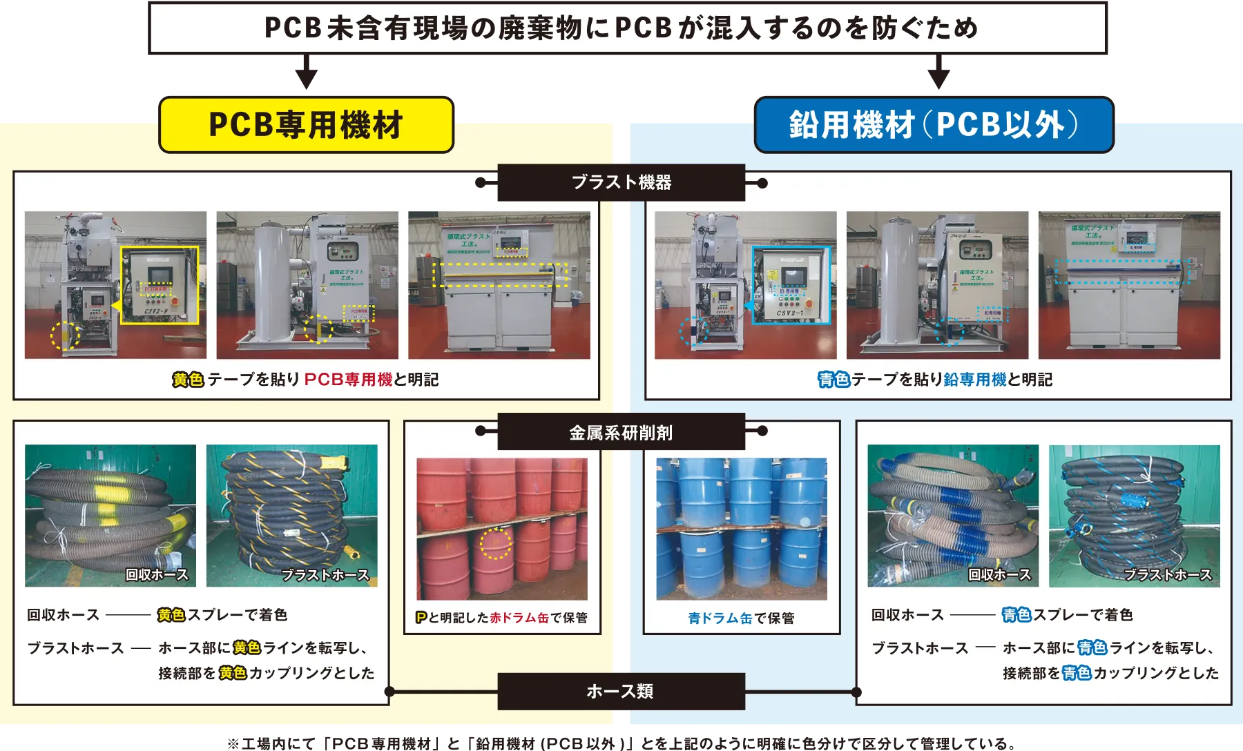 PCB専用機材とPCB以外の鉛用機材とを明確に区別せず作業を行うと、PCB未含有現場も汚染する危険性があります。
